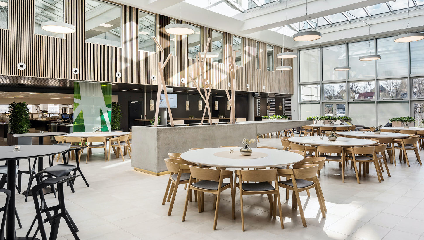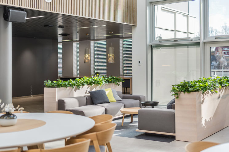 Prosjektering av innredning i nybygg. Kontoretasjer, resepsjon, kantine og møteromsavdeling.